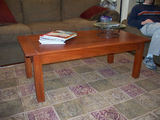 It's perfect! He got to take it to my Dad's shop (where they make cabinets) to finish it the right way, after a little trial and a lot of error here at the house. Luckily, wood is very forgiving and a good sanding covers a multitude of sins!